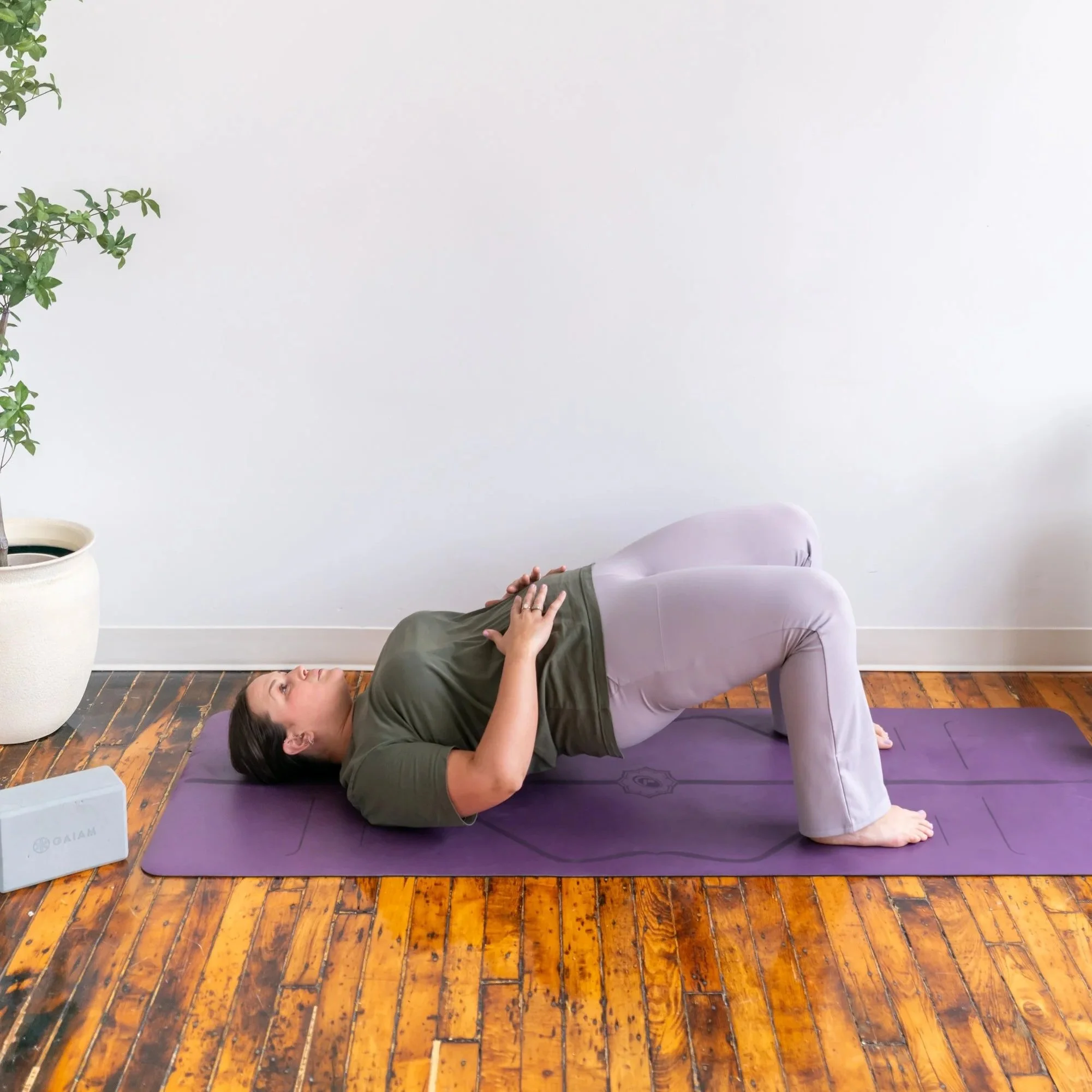 After birth, weakened glutes can contribute to back pain, hip instability, and even make pelvic floor recovery harder, because the glutes help support the pelvis. Postpartum yoga includes gentle, safe glute activation to bring those muscles back online, improve stability, and make daily mom life easier on your body.