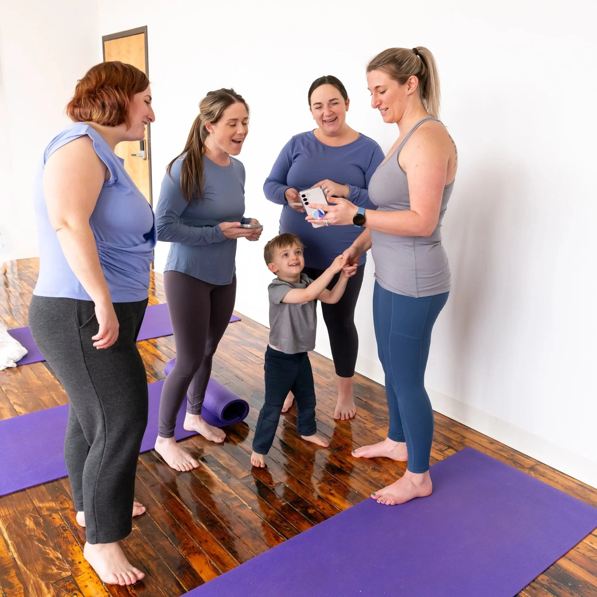 When you come to the studio, I can help you with alignment, offer modifications, and even lend a hand with your baby if you need a moment. For baby yoga, I can guide you through safe movements for your little one and give tips for calming them if they get fussy. Plus, you get that real-life connection with other moms in your area. -